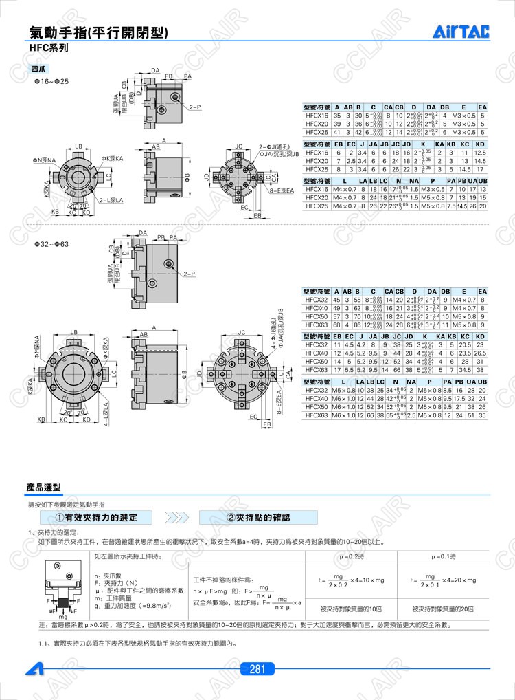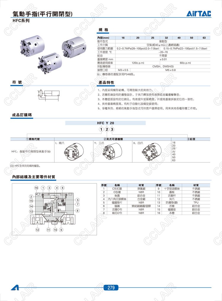 亞德客AIRTAC,HFCI16,HFCI20,HFCY25,HFCY32,HFCX40,HFCX50,氣動(dòng)手指