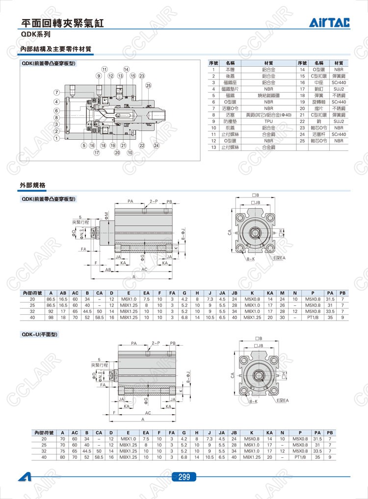 亞德客AIRTAC,QDKL20*5-S,QDKR20*5-S,QDKL25*5-S,QDKR25*5-S,QDKL32*5-S,平面回轉夾緊氣缸