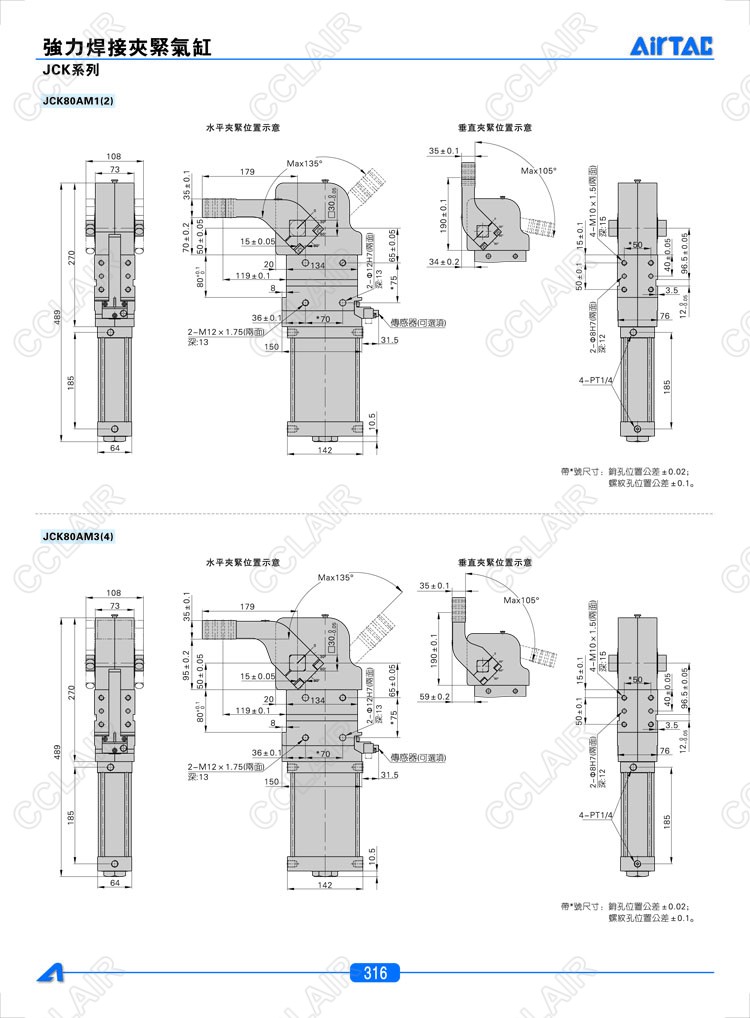 亞德客AIRTAC,JCK40*15AM1R,JCK40*15AM1C,JCKV40*15AM1R,JCKV40*15AM1C,JCKV40*15AM1L,強力焊接夾緊氣缸