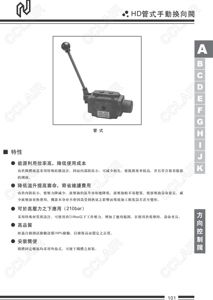 Northman臺灣北部精機,管式手動(dòng)換向閥HD-T02-2C2-10,HD-T02-2D2-10,HD-T02-3C4-10,HD-T03-2C40-10,HD-T03-3B20-10,HD-T03-3C60-10,HD-T04-2B2S-10,HD-T06-3C7-10,HD-T10-2C2-10,HD-T10-2D3-10,HD-T10-3C40-10,HD-T10-3B3S-10
