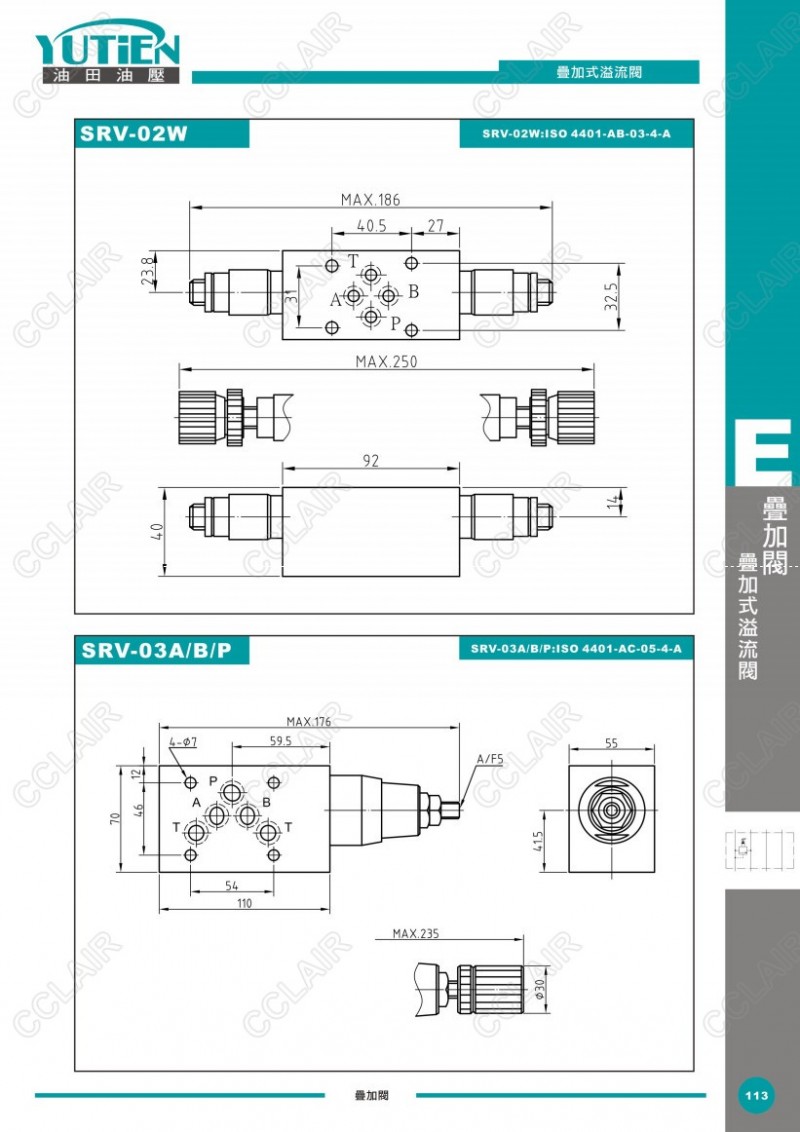 YUTIEN油田 疊加式溢流閥SRV-02,SRV-03,SRV-04,SRV-06