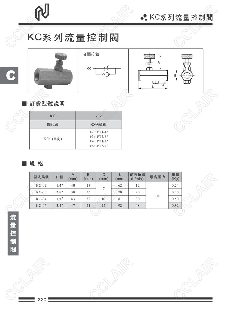 Northman臺灣北部精機,流量控制閥KC-02,KC-03,KC-04,KC-06