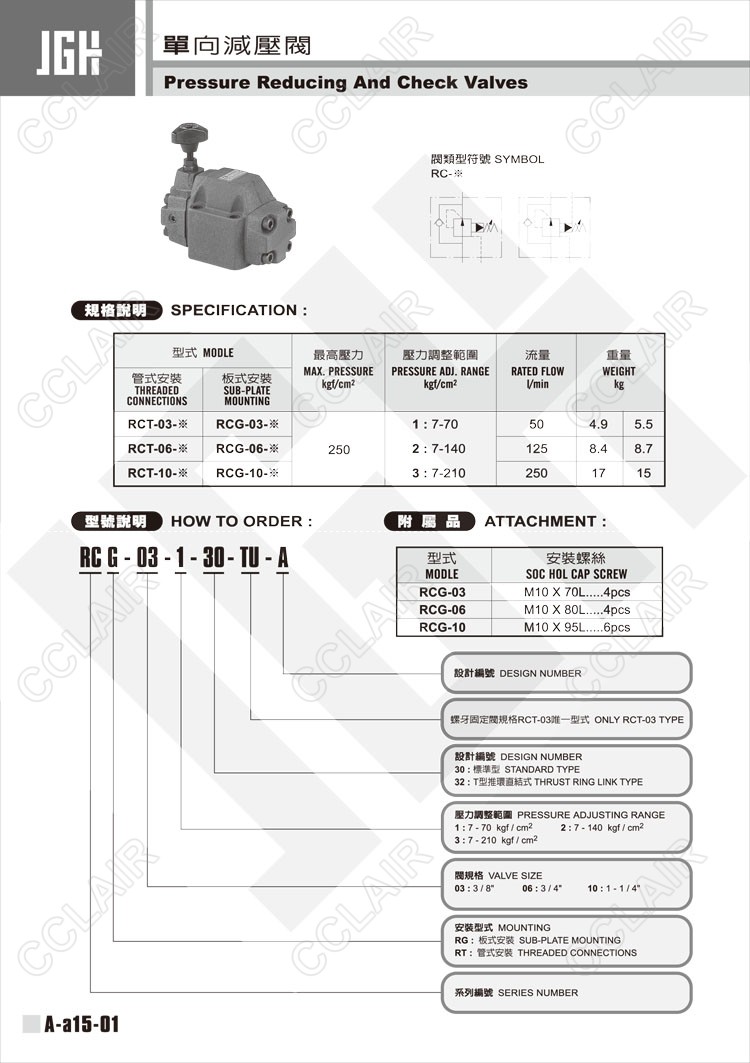 JeouGang臺灣久岡,單向減壓閥RCG-03-1-30-TU-A,RCG-03-1-32-TU-A,RCG-06-3-30-TU-A,RCG-06-3-32-TU-A,RCG-10-1-30-TU-A,RCG-10-1-32-TU-A,RCT-03-3-30-TU-A,RCT-03-3-32-TU-A,RCT-06-1-30-TU-A,RCT-06-1-32-TU-A,RCT-06-2-30-TU-A,RCT-06-3-32-TU-A
