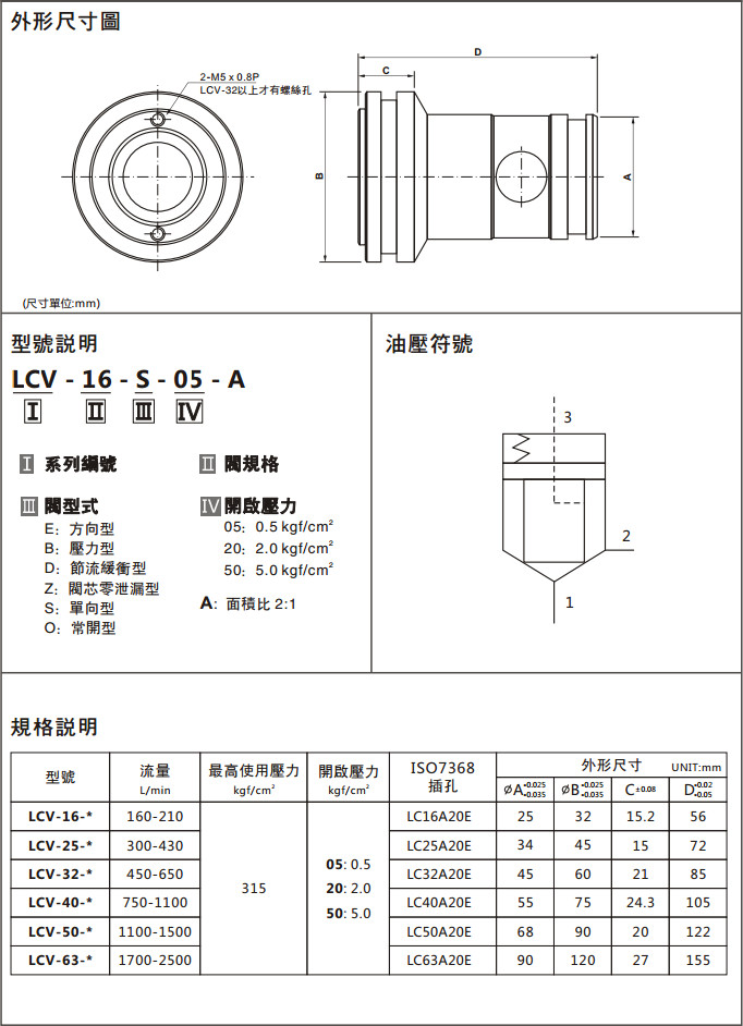 LCV-16-S-05-A,LCV-25-S-05-A,LCV-32-S-05-A,LCV-40-S-05-A,LCV-50-S-05-A,LCV-63-S-05-A,LCV-16-S-20-A,LCV-25-S-20-A,LCV-32-S-20-A,LCV-40-S-20-A, LCV-50-S-20-A,LCV-63-S-20-A,LCV-16-S-50-A,LCV-25-S-50-A,LCV-32-S-50-A,LCV-40-S-50-A,LCV-50-S-50-A,LCV-63-S-50-A,邏輯閥單向型