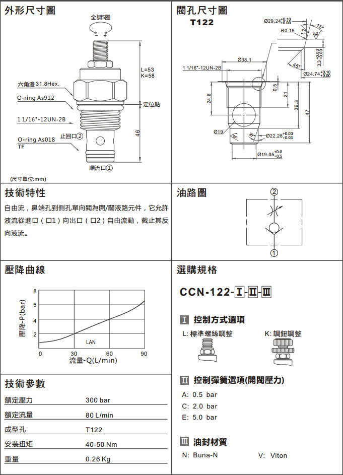 CCN-122-LAN,CCN-122-LCN,CCN-122-LAV,CCN-122-KEN,CCN-122-KCV,CCN-122-LEN,CCN-122-LCV,CCN-122-LEV,CCN-122-KAN, CCN-122-KCN,CCN-122-KAV,CCN-122-KEV,單向閥(口1通口2自由流,附調整桿)