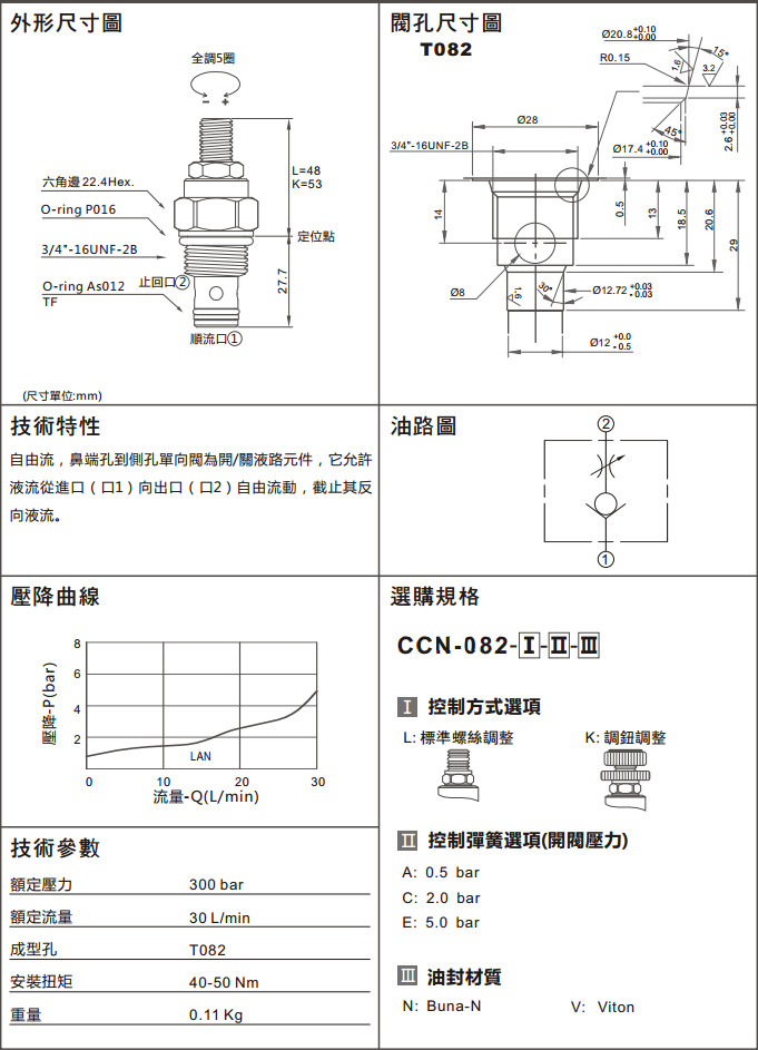 CCN-082-LAN,CCN-082-LCN,CCN-082-LEV,CCN-082-KAN,CCN-082-KEV,CCN-082-LEN,CCN-082-LAV,CCN-082-LCV,CCN-082-KCN, CCN-082-KEN,CCN-082-KAV,CCN-082-KCV,單向閥(口1通口2自由流,附調整桿)