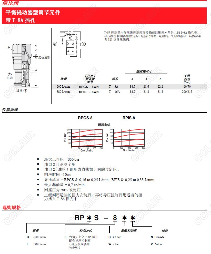 RPGS-8WN,RPIS-8WN,RPGS-8BN,RPIS-8BN,平衡提動(dòng)塞型調節元件帶T-8A插孔泄壓閥