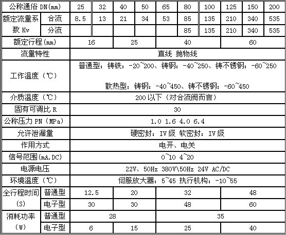本系列產(chǎn)品公稱(chēng)通徑由20至200mm,公稱(chēng)壓力有1.0、1.6、4.0、6.4MPa,使用溫度范圍由-40℃~450℃,接受信號為0~10mA.DC或4~20mA.DC。其中電動(dòng)單座調節閥適用于壓差較小,介質(zhì)粘度較大或稍有顆粒雜質(zhì)場(chǎng)合。電動(dòng)套筒調節閥適用于壓差較大場(chǎng)合。按閥內件密封部分材質(zhì)分又有金屬-金屬和非金屬-金屬密封兩種,后者閥關(guān)閉時(shí)泄漏量可達VI級(零泄漏)標準。按填料不同可分為一般填料密封和波紋管密封兩種,前者用一般場(chǎng)合,而后者用至不允許外漏的重要場(chǎng)合。流量特性為線(xiàn)性或等百分比。配用不同的執行機構可分為普通型和電子型兩種。多種多樣的品種規??晒┻x擇。