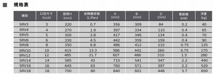 SRV3,SRV4,SRV5,SRV6,SRV8,SRV10,SRV12,SRV14,SRV16,SRV18,旋轉下料斗