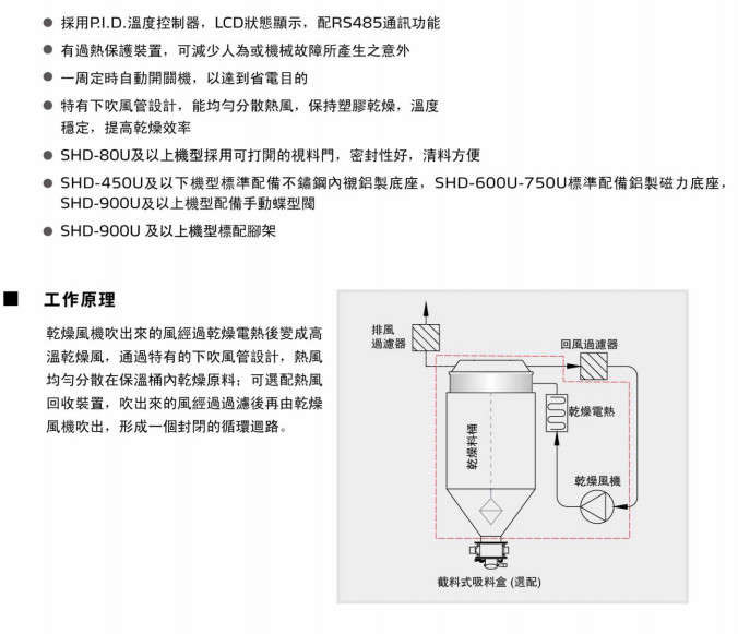 SHD-20U,SHD-40U,SHD-80U,SHD-120U,SHD-160U,SHD-230U,SHD-300U,SHD-450U,SHD-600U,SHD-750U,SHD-900U,SHD-1200U,SHD-1500U,SHD-2000U,SHD-2500U,SHD-3000U,SHD-3500U,SHD-4000U,SHD-5000U,SHD-6000U,SHD-7000U,SHD-8000U,歐化料斗干燥機