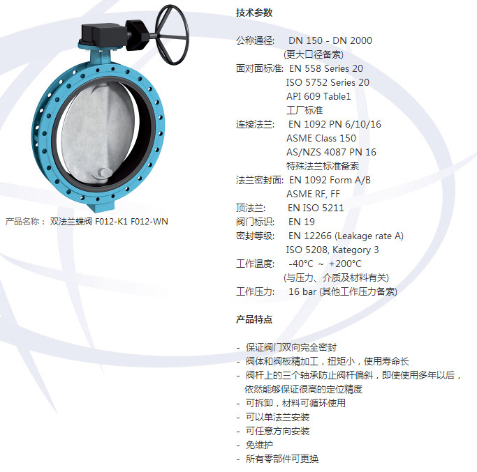 012-K1 DN150,F012-K1 DN200,F012-K1 DN250,F012-K1 DN300,雙法蘭蝶閥