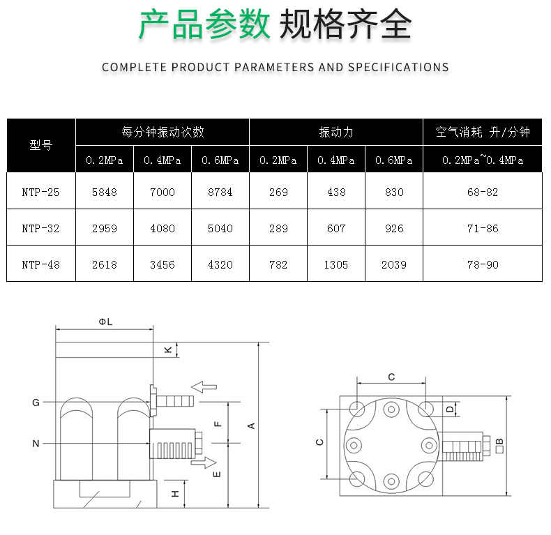 氣缸式活塞往復式振動(dòng)器NTP-25,NTP-32,NTP-48直線(xiàn)沖擊下料
