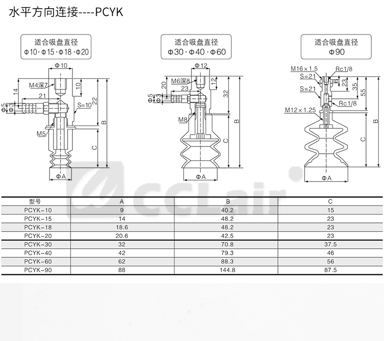 三段式吸盤(pán)固定式金屬帶倒鉤接頭PCYK-10,PCYK-15,PCYK-18,PCYK-20,PCYK-30,PCYK-60,PCYK-90,