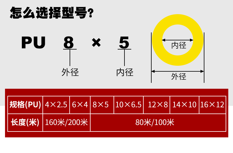 PU氣管 PU4*2.5,PU6*4,PU8*5,PU10*6.5,PU12*8,PU14*10,PU16*12