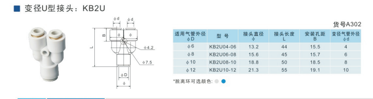 SMC型變徑U型接頭KB2U04-06,KB2U06-08,KB2U08-10,KB2U10-12,KB2U12-16,