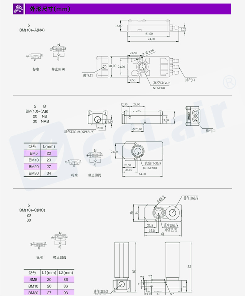 迷你型多級真空發(fā)生器BX05-A,BX05-B,BX05-C,BX10-A,BX10-B,BX10-C,BX20-B,BX20-C,BX30-B,BX30-C,