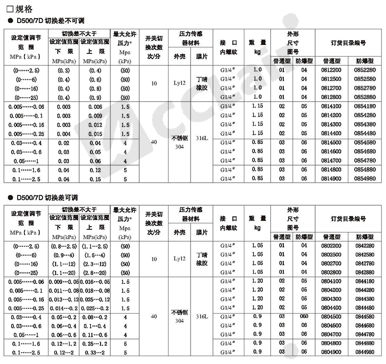 0842280,0844580,0842580,0844680,壓力控制器 防爆 D500/7D切換差可調 0842780,0844780,0842880,0844880, 0844180,0844980,0844280,0844380,0844480,