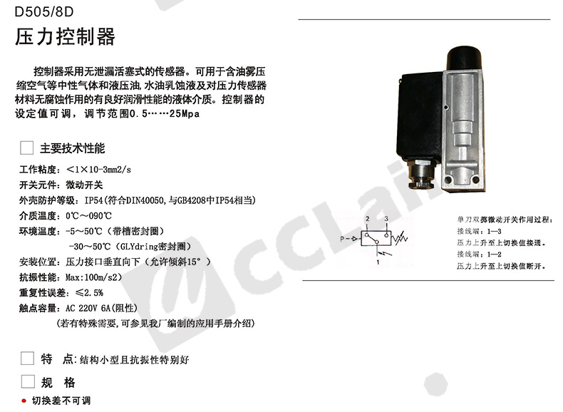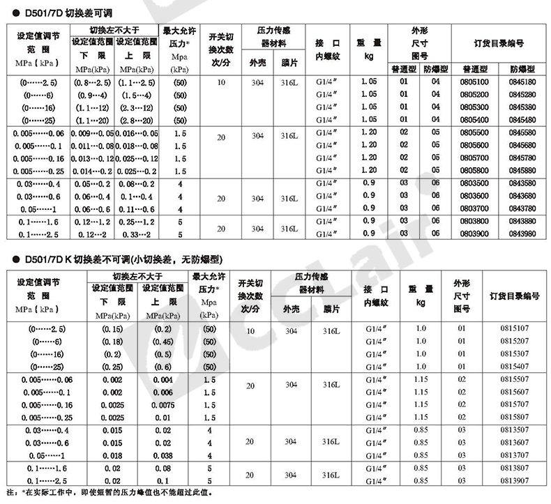 0815108,0813508,0815208,0813608,壓力控制器 D501/7DZ切換差不可調