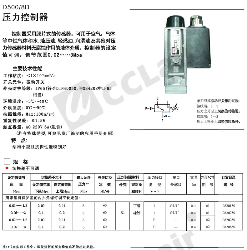 0855180,0853580,0855280,0853680,壓力控制器 防爆 D501/7D切換差不可調