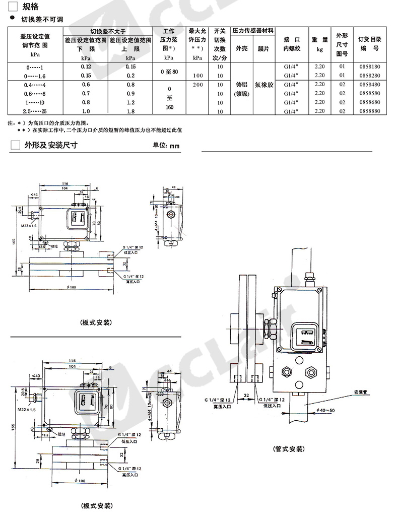 0819113,0819513,0819213,0819613,小切換差型差壓控制器D530/7DDK切換差不可調 0819313,0819713,0819413,0819813,