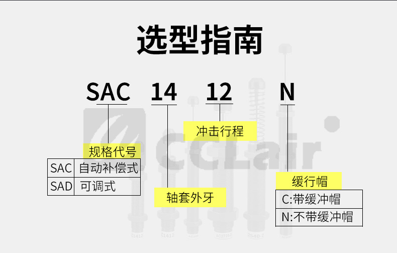 SAC-0806N,SAC-0806C,SAC-1005N,SAC-1005C,SAC-1008N,SAC-1008C,緩沖器,臺灣氣立可CHELIC型 SAC不可調式油壓