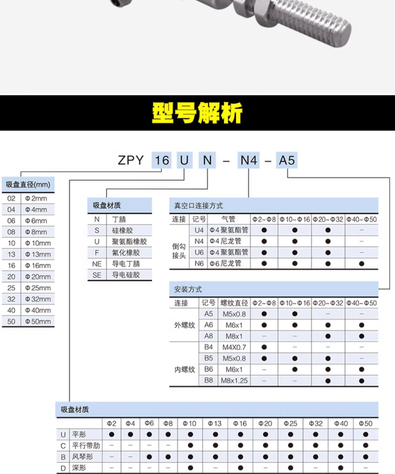 ZPY02U*-A5,ZPY04U*-A5,ZPY06U*-A5,ZPY08U*-A5,ZPY02U*-B4,ZPY04U*-B4,ZPY06U*-B4,ZPY08U*-B4,ZPY10U*-A5,ZPY13U*-A5,ZPY16UN-A5,ZPY10U*-B5,ZPY13U*-B5,ZPY16U*-B5,ZPY20U*-A6,ZPY25U*-A6,ZPY32U*-A6,ZPY20U*-B6,ZPY25U*-B6真空吸盤(pán)