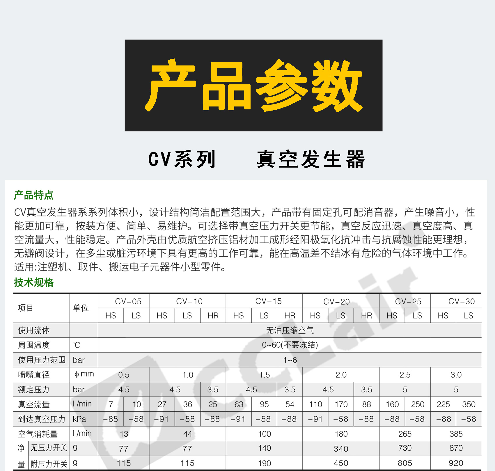 EV-10HS,EV-15HS,EV-20HS,EV-20HS,EV-25HS,EV-25HS,EV-30HS,CV-05HS,CV-10HS,CV-15HS,CV-20HS,CV-25HS,CV-30HS,CV-10HS-MD,CV-15HS-MD,CV-20HS-MD,CV-25HS-MD,CV-30HS-MD,CV-05HS-CK,CV-10HS-CK,CV-15HS-CK,CV-20HS-CK,CV-25HS-CK,CV-30HS-CK真空發(fā)生器