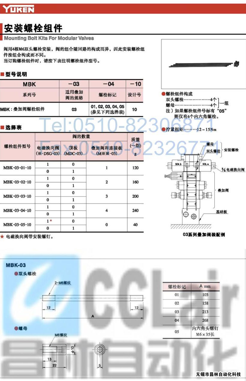 MBK-03-02-10,MBK-03-03-10,MBK-03-05-10,安裝螺栓組件,榆次油研安裝螺栓組件,YUKEN安裝螺栓組件