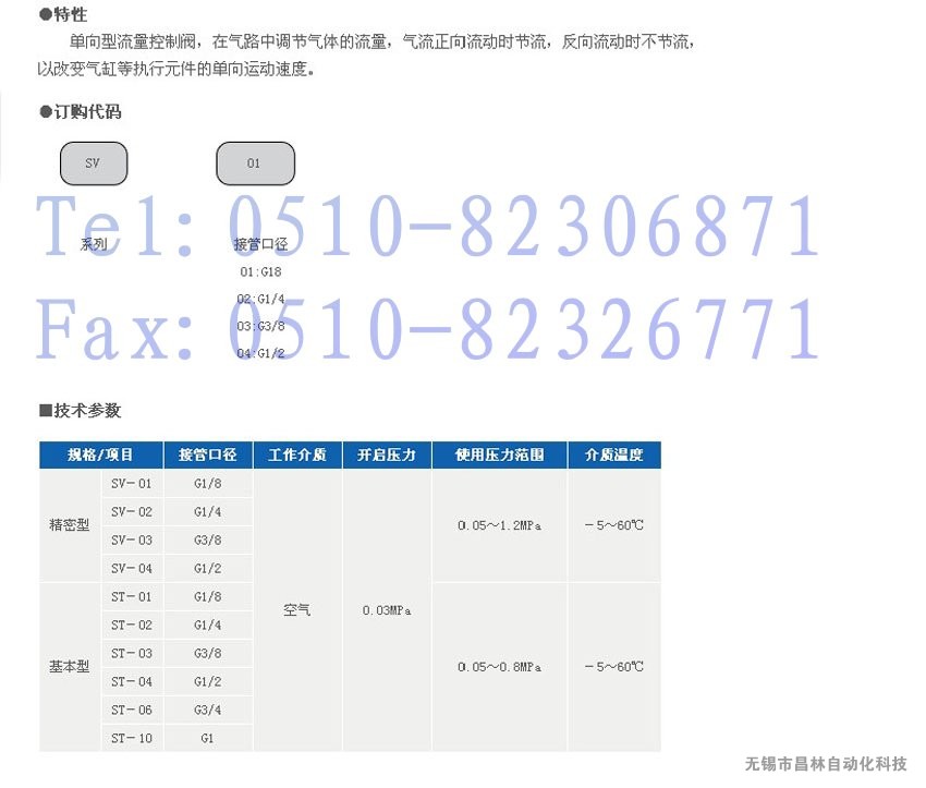 SV-01,SV-02,SV-03,SV-04,STNC單向節流閥,