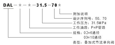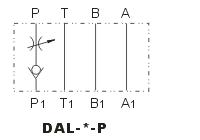 DAL型疊加式節流單向閥,它是單向閥和節流閥串聯(lián)組合的一種節流單向閥,它的作用是只允許油液?jiǎn)畏较蛲ㄟ^(guò)并用節流閥進(jìn)行流量調節,而反向則截止。
