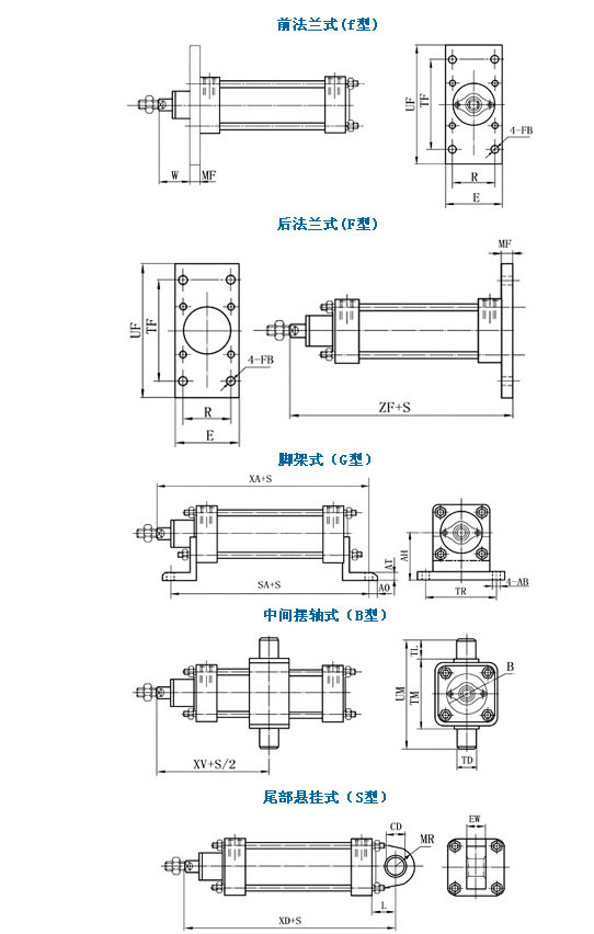 JB-80,JB-100,JB-125,JB-160,JB-180,JB-200,JB-250,JB-320,JB-400,無(wú)緩沖氣缸
