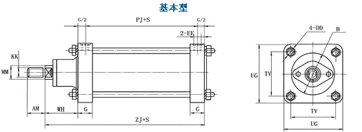 | 氣缸內徑(mm) | AM | B | DD | EE | G | KK | MM | PJ | TV | UG | WH | ZJ |