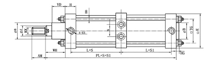 兩種均為QGBⅡ系列相同缸徑的氣缸串聯(lián)而成的雙活塞氣缸,兩活塞運動(dòng)方向相同。