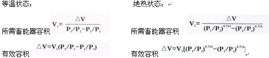 式中:P1=蓄能器充氣壓力 P2=系統的最低工作壓力 P3=系統的最高工作壓力