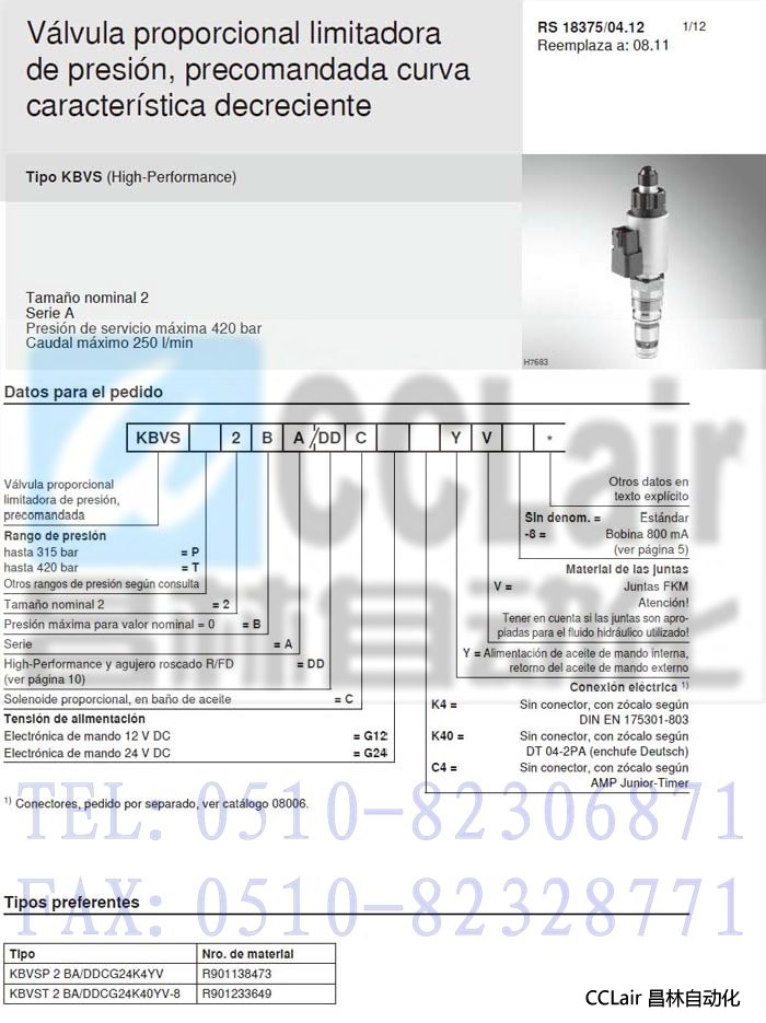 KBVSP2BA/DDCG24K4YV,KBVSP2BA/DDCG24K40YV-8,先導式比例溢流閥,力士樂(lè )REXROTH,德國力士樂(lè )