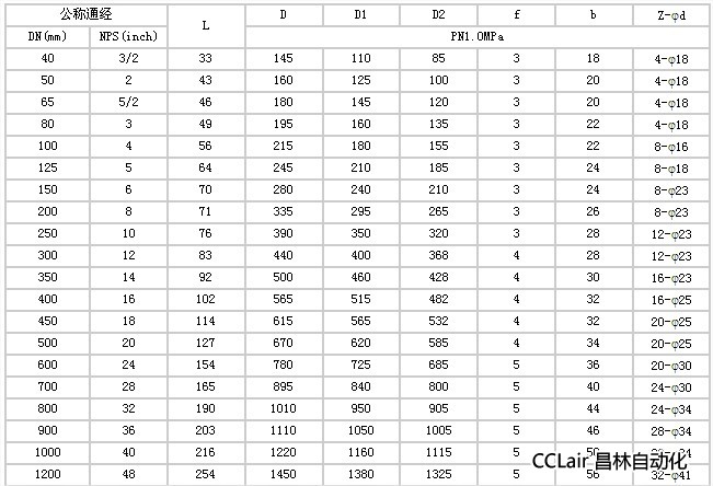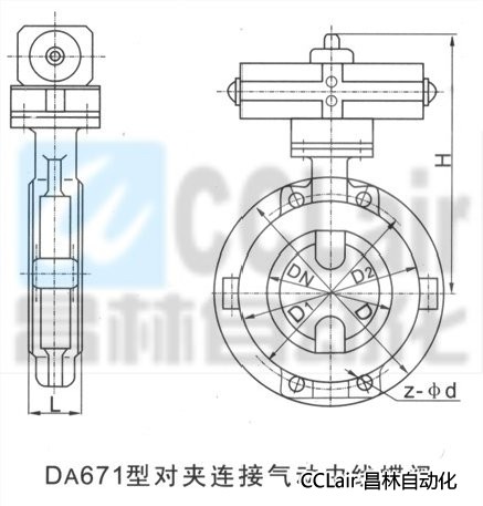 氣動(dòng)襯氟蝶閥主要外形和連接尺寸