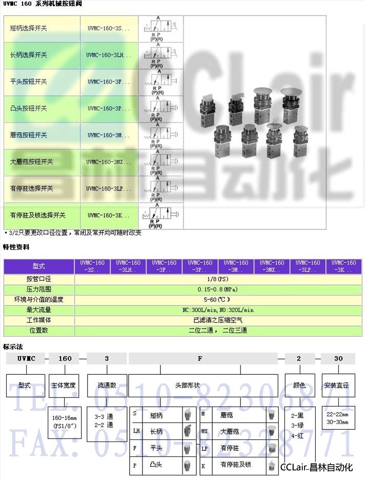 UVMC-160-3S,UVMC-160-3LH,UVMC-160-3F,UVMC-160-3P,機械按鈕閥