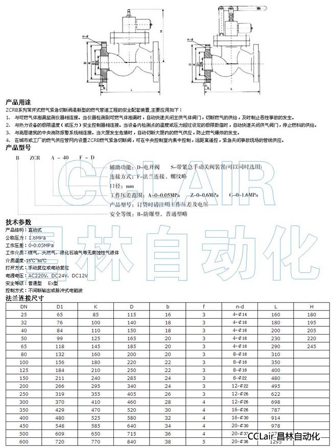 ZCRA-65,ZCRA-80,ZCRA-100,ZCRA-125,ZCRA-150,常開(kāi)式燃氣緊急切斷閥