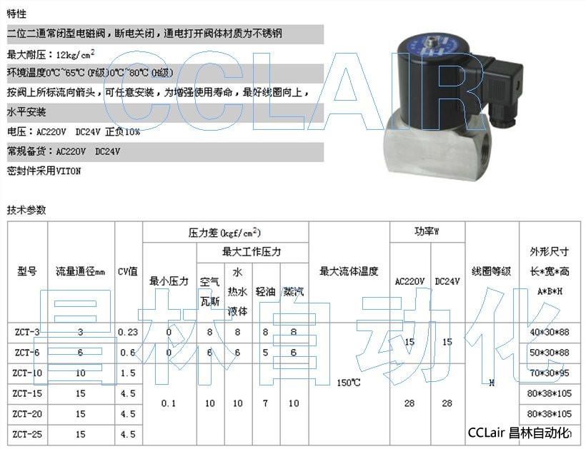 ZCT-3,ZCT-6,ZCT-10,ZCT-15,ZCT-20,ZCT-25,不銹鋼電磁閥