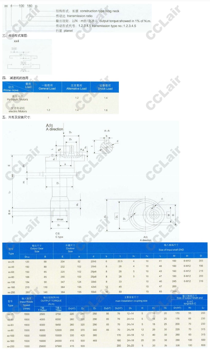 xx-25,xx-40,xx-63,xx-80,xx-100,xx-160,xx-250,回轉行星齒輪減速機
