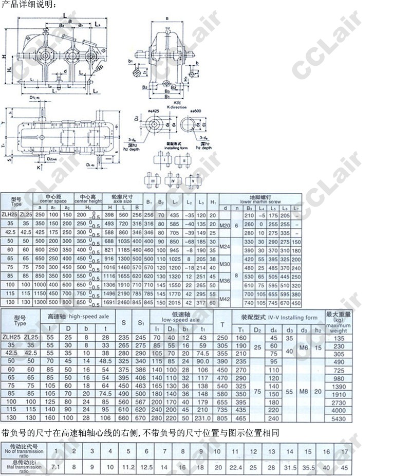 ZL25,ZL35,ZL42.5,ZL50,ZL60,ZL65,ZL75,ZL85,ZL100,ZL115,ZL130,圓柱齒輪減速機