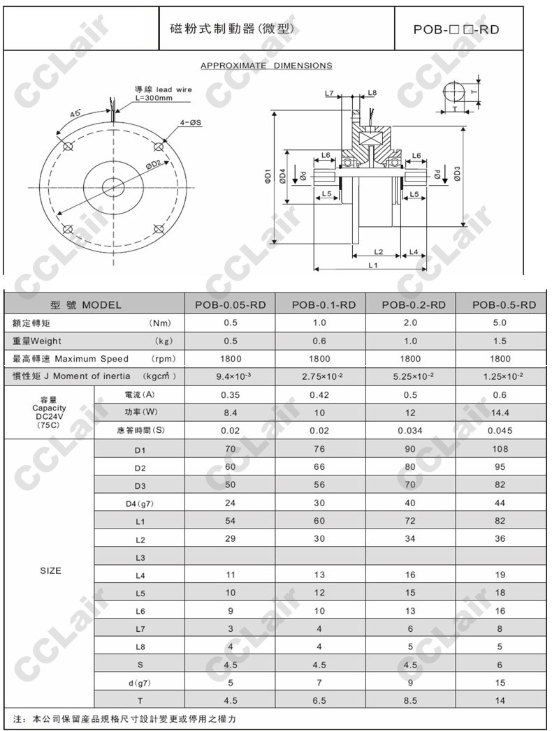 POB-0.05-RD,POB-0.1-RD,POB-0.2-RD,POB-0.5-RD,微型磁粉式制動(dòng)器