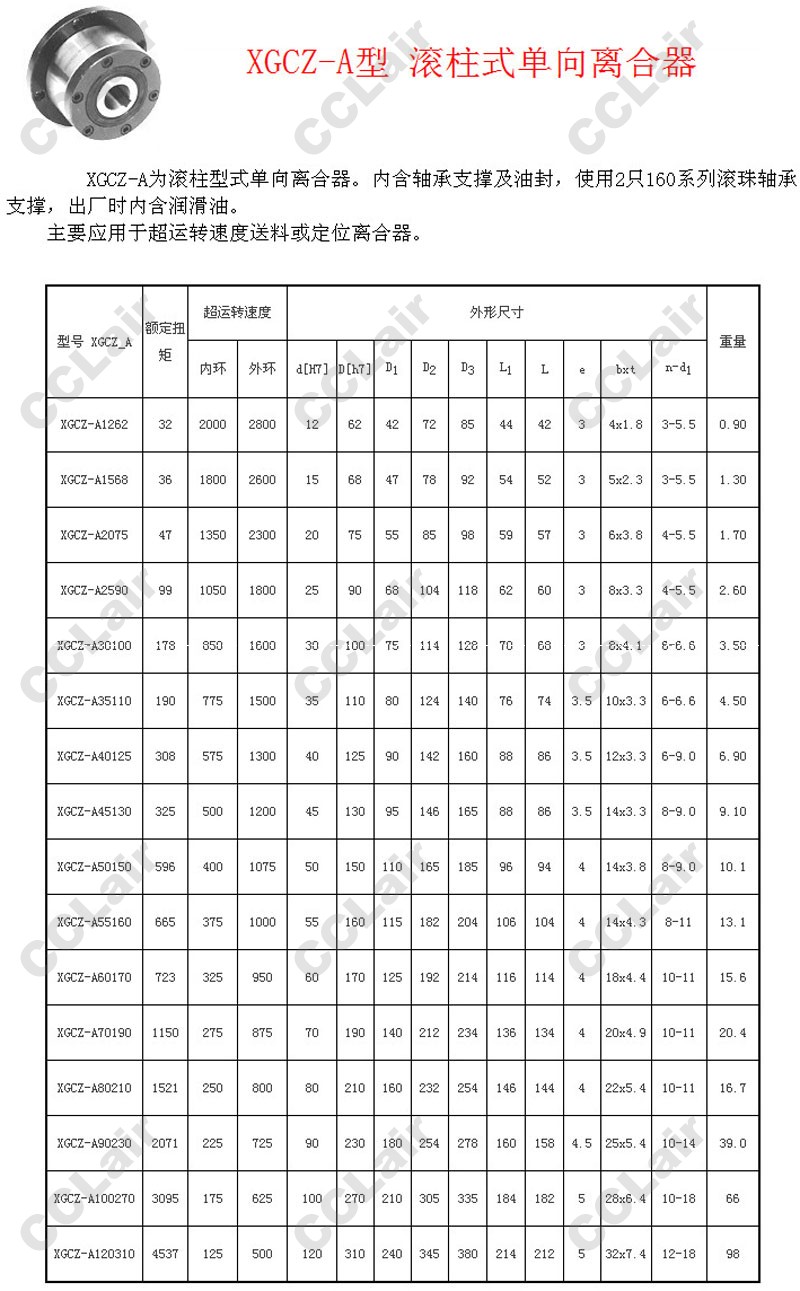 XGCZ-A1,XGCZ-A2,XGCZ-A3,XGCZ-A4,XGCZ-A5,XGCZ-A6,XGCZ-A7,XGCZ-A8,XGCZ-A9,XGCZ-A13,滾柱式超越離合器
