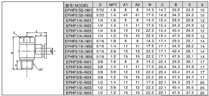 EPHF5/16-N04,EPHF3/8-N01,EPHF3/8-N03,EPHF3/8-N04,EPHF1/2-N03,EPHF1/2-N04,
