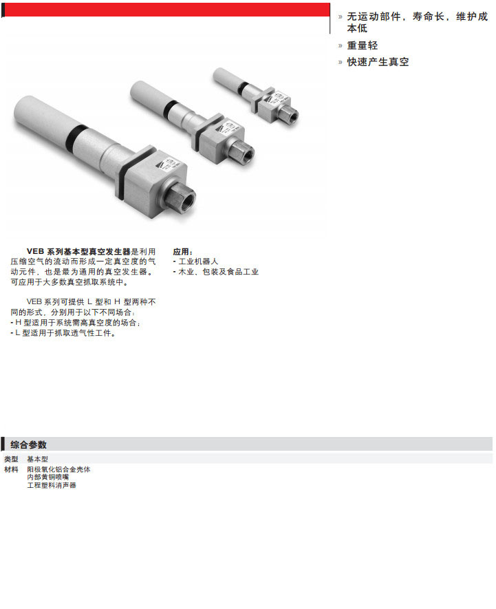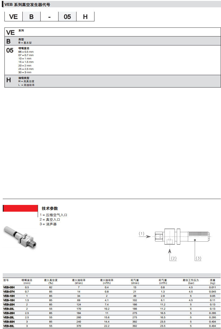 VEB-05H,VEB-07H,VEB-10H,VEB-15L,VEB-20L,VEB-25L,camozzi基本型真空發(fā)生器