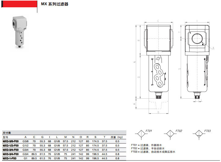 MX2-3/8-F00,MX2-1/2-F03,MX3-1/2-F05,MX3-3/8-F08,camozzi過(guò)濾器