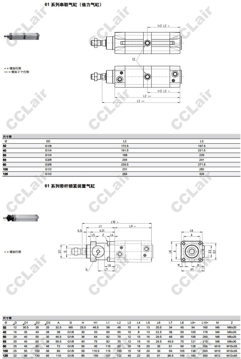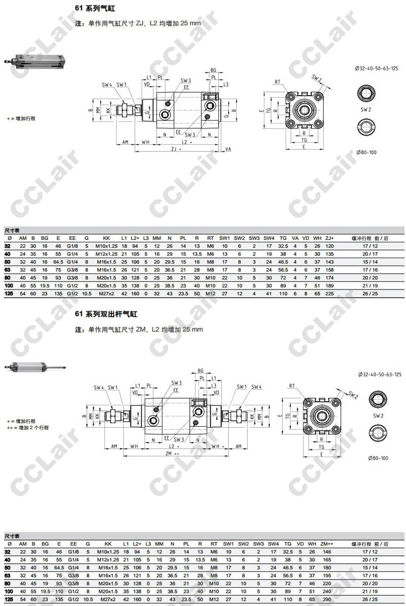 61M1P032A0100,61M2P050A0200,61M3P063A0250,61M4P080A0300,61M5P0125A0400,61N6P0100A0320,camozzi氣缸