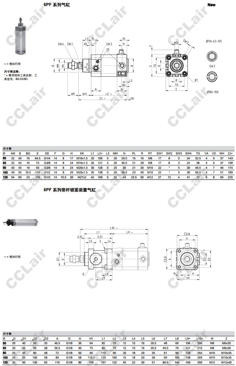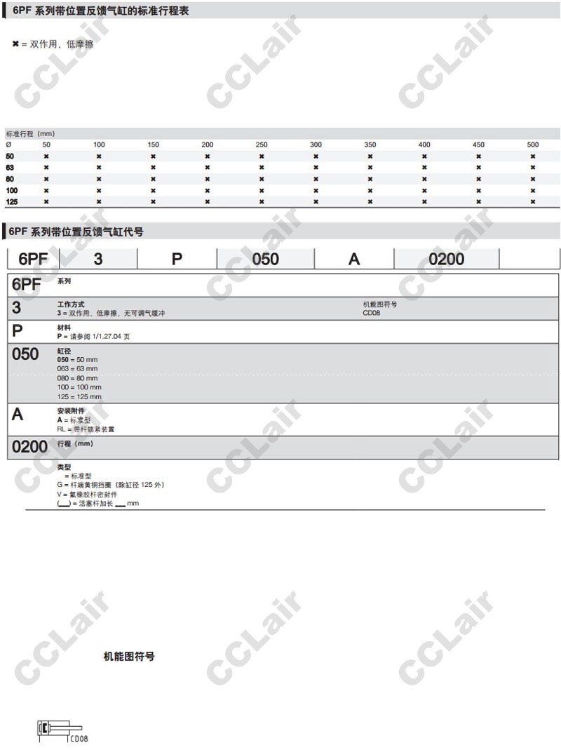 6PF3P050A050,6PF3P063A0100,6PF3P080A0150,6PF3P0100A0200,6PF3P0125A0300,6PF3P050A0400,camozzi氣缸