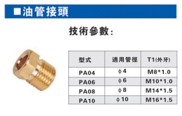 PA04,PA06,PA08,PA10,油管接頭
