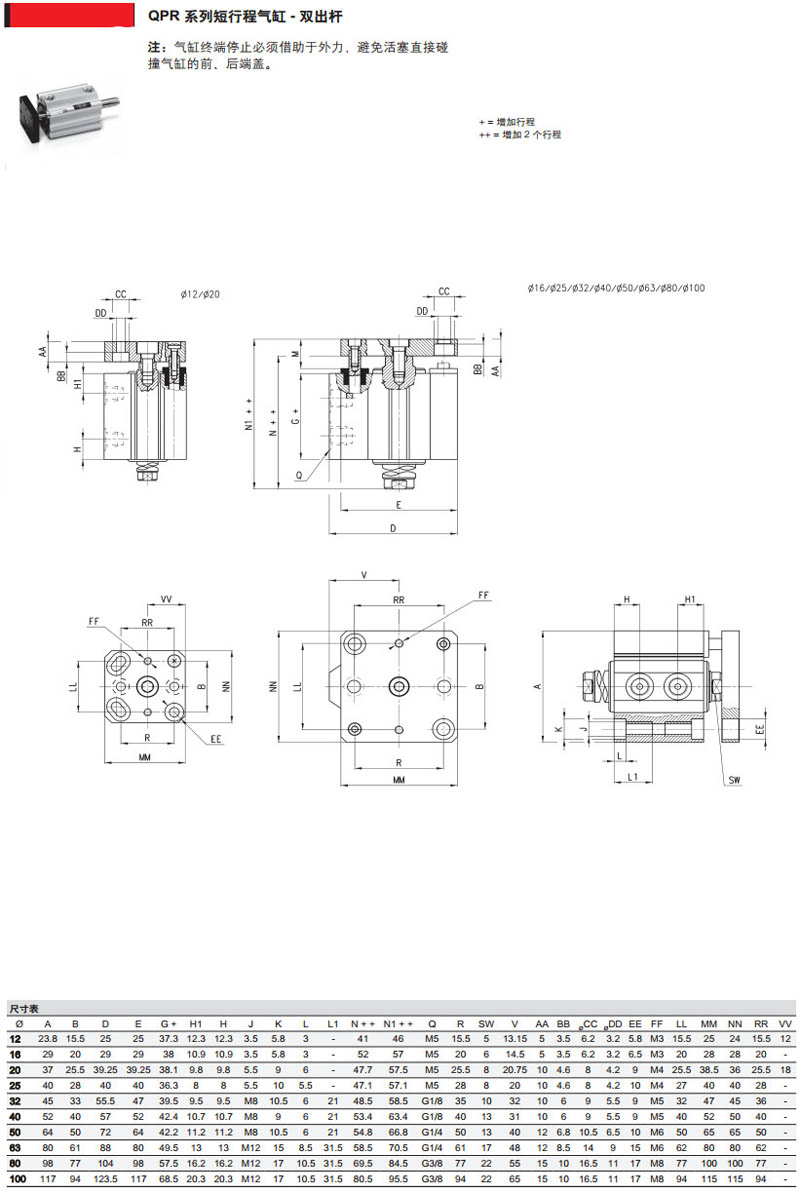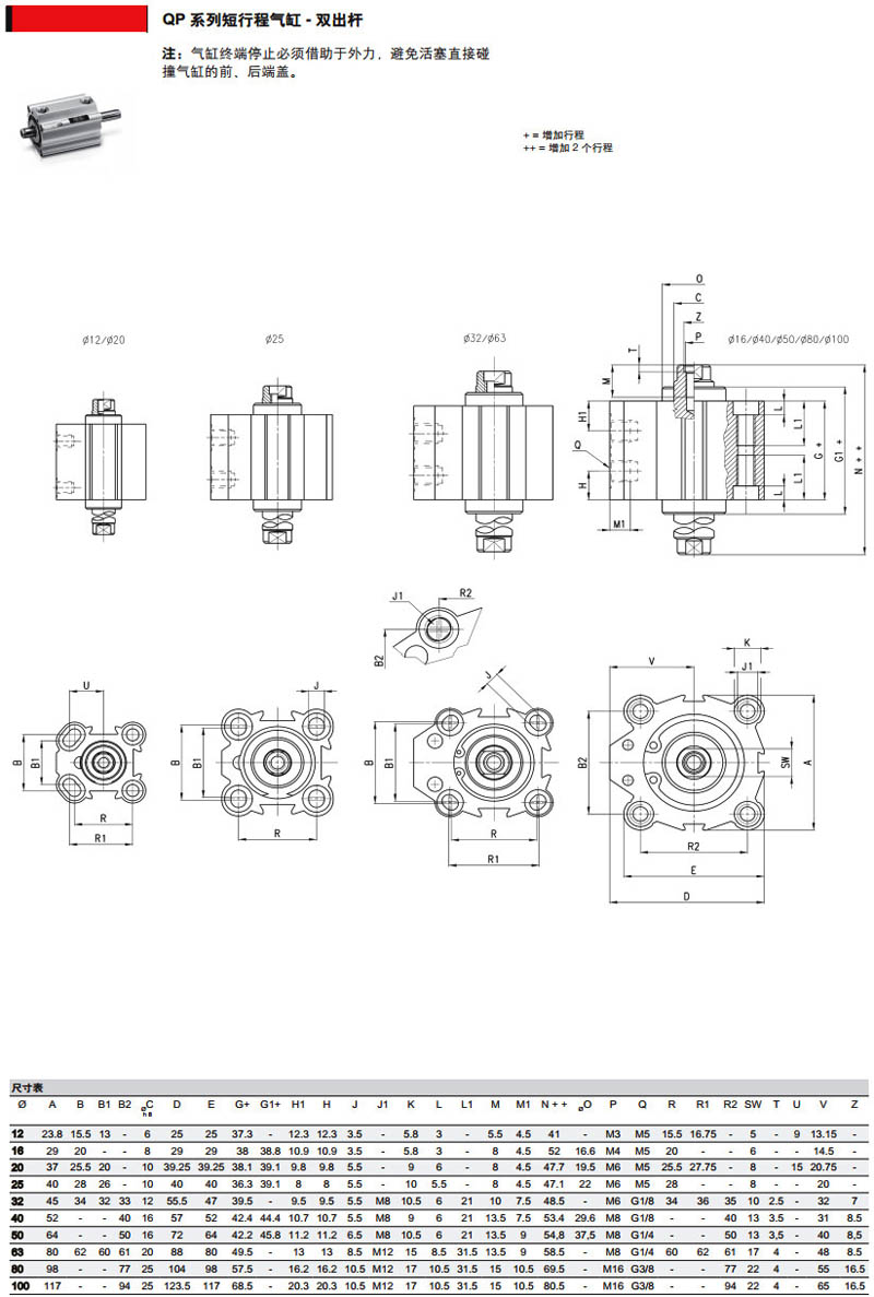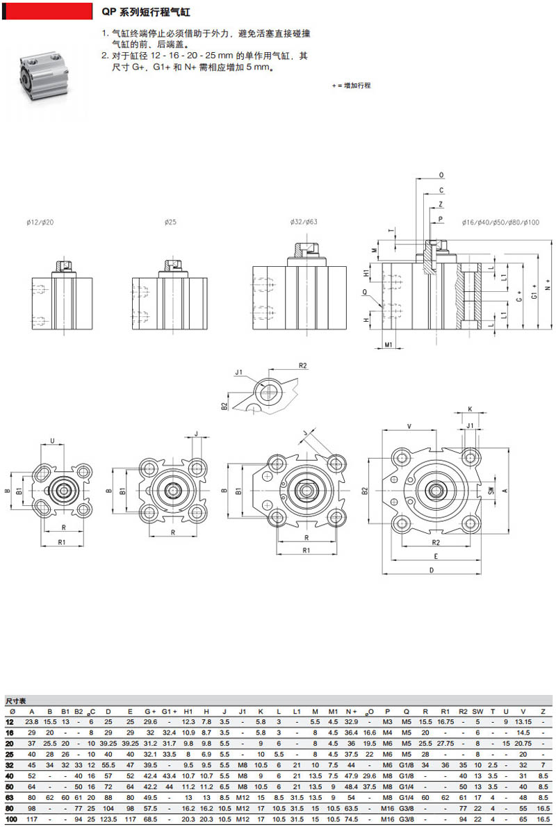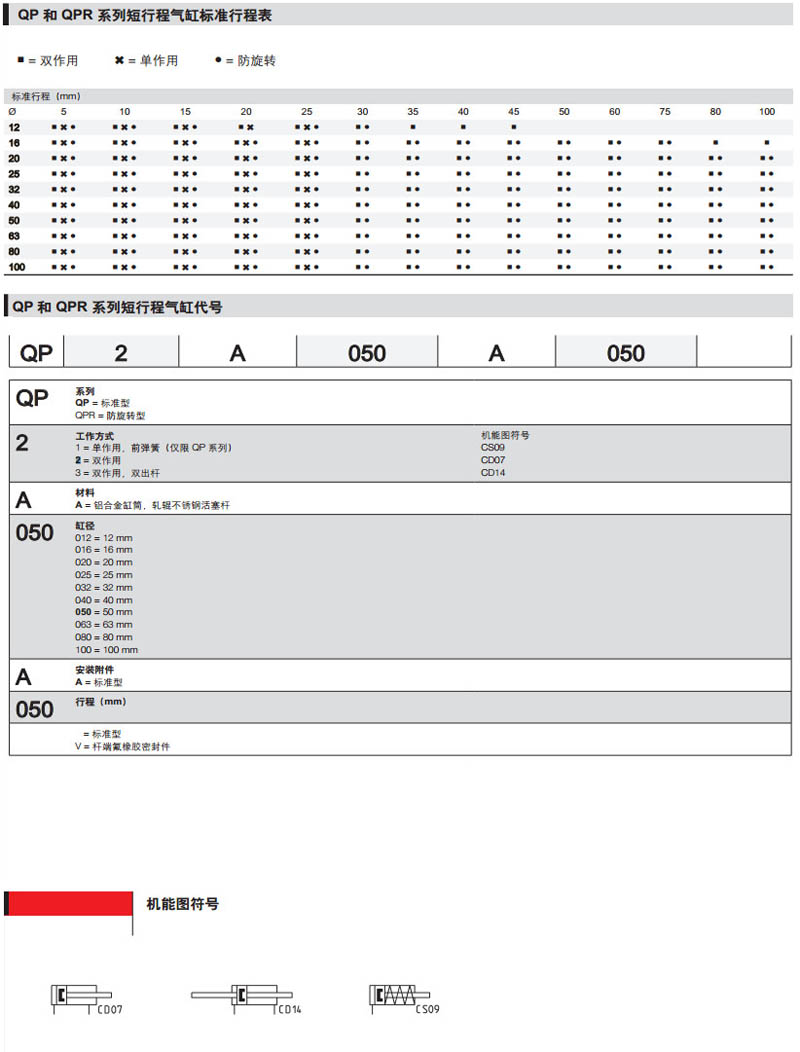 QP1A012A05,QP3A040A050,QP2A050A050,QP1A080A010,QPR3A040A010,camozzi短行程氣缸
